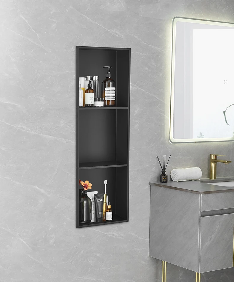 New Design Home Bathroom Waterproof Recessed Shower Wall Niche Square SUS304 Stainless Steel Hotel Bathroom Shower Niche
